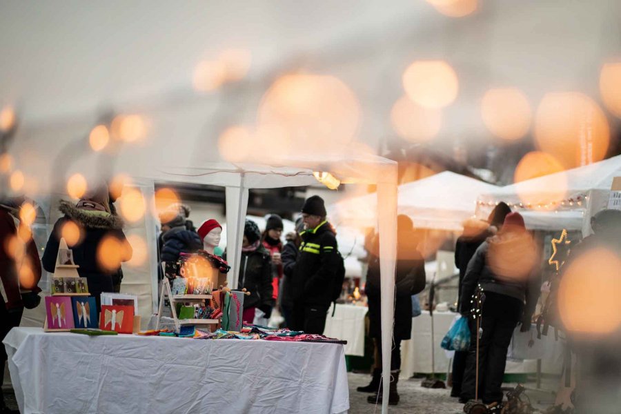 Dieser Markt, der jeweils am dritten Adventswochenende stattfindet, ist etwas ganz Besonderes: ein Handwerksmarkt, an dem die Aussteller in liebevoller Handarbeit hergestellte Erzeugnisse feilbieten. Die Schwestern Erika Zurbriggen und Bernadette Bolli haben gleich zwei Stände nebeneinander. Erika Zurbriggen verkauft von ihrer Mutter gestrickte, farbenfrohe Sun-Mützen, selbst geschnitzte Tiere wie Schwarzkopfschafe oder Ziegen, Holzengel sowie kunstvolle Baumkrippen, für die ihr Mann eigens das Holz aushöhlt. Ihre originellen Krippen stellt sie von Mitte November bis Ende Jahr jeweils auch in ihrer Boutique Sun-