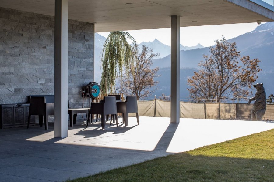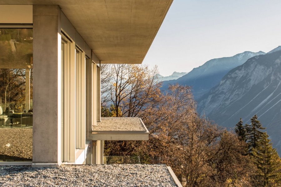 Die Architektur ermöglicht es Ihnen, den Wohnbereich nach außen zu erweitern. Öffnen Sie einfach die großen Skyframe-Fenster, um einen nahtlos großen Lebensraum zu schaffen. Genießen Sie die höchste Wohnqualität.